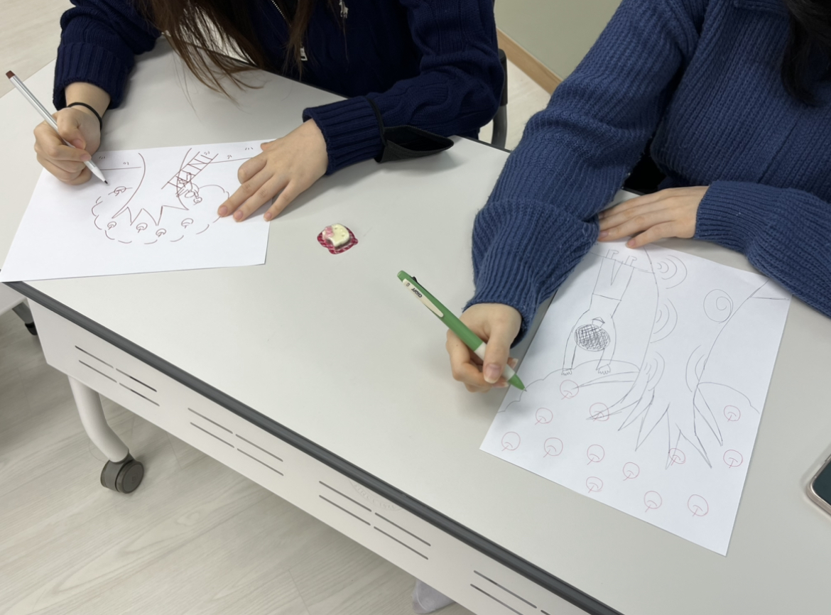 이후에는 가볍게 미술치료 PPAT(person picking an apple from a tree)를 진행하였습니다.