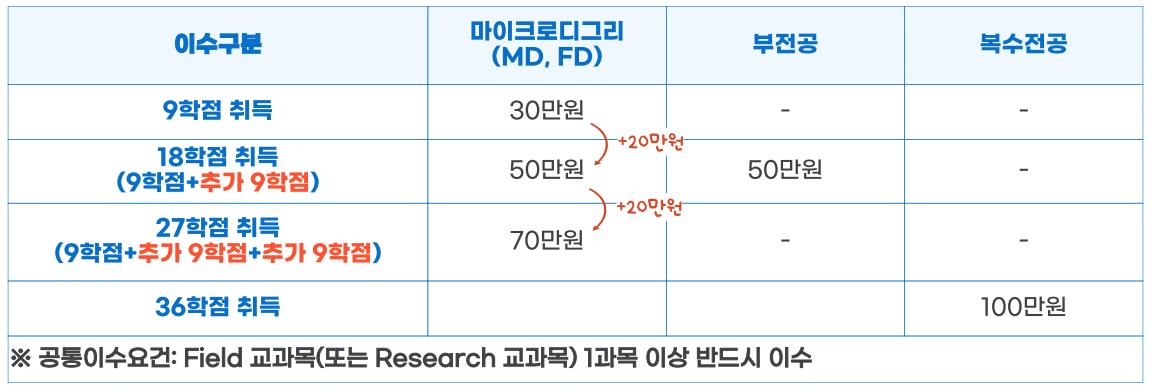 • 마이크로디그리·복수전공·부전공 이수 완료 시 장학금 지급