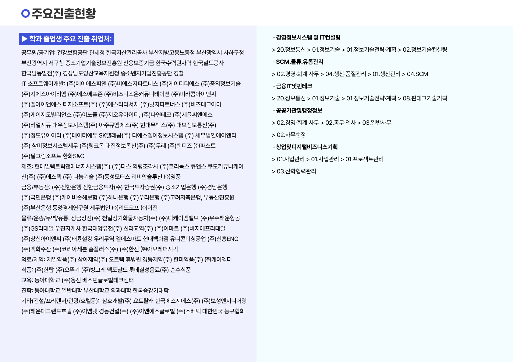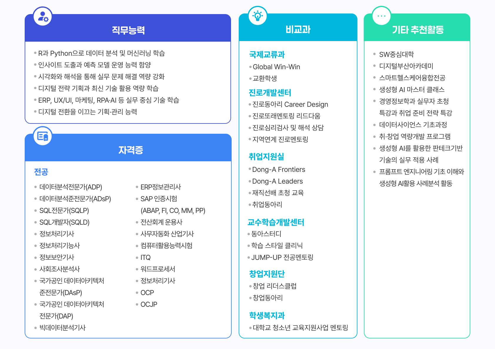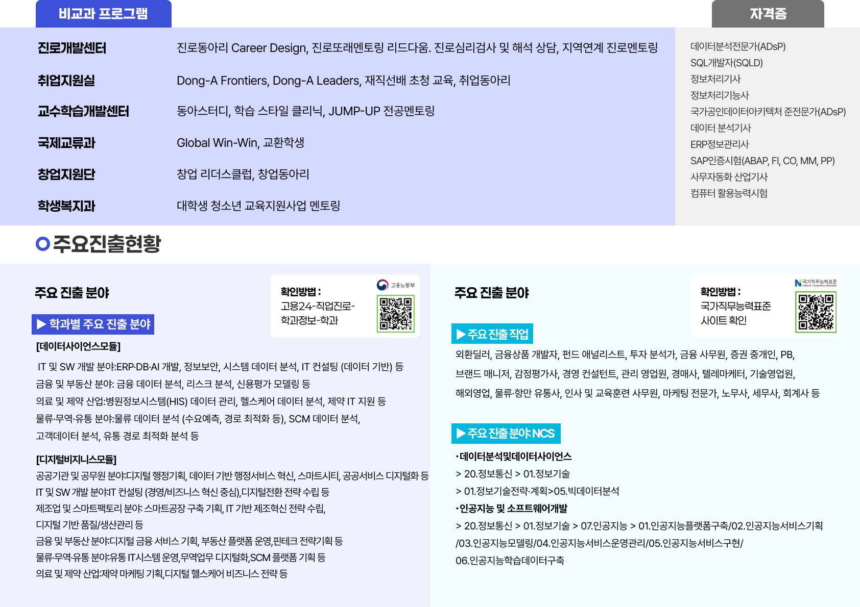진로 및 취업 열린 미래 꿈이있는 대학, 동아대학교 메인으로 이동 진로 및 취업 학과안내 교과과정 장학안내 진로 및 취업 학생활동 학과 주요 공지사항 입학안내 대학원 기타 닫기 진로 로드맵 취업정보 취업현황 공모전/대외활동 대학원 진학 자격증 정보 닫기 진로 및 취업 진로 및 취업 취업정보 취업현황 공모전/대외활동 대학원 진학 자격증 정보 진로 로드맵 SNS 목록열기 FACEBOOK 공유하기 TWITTER 공유하기 BLOG 공유하기 SNS 목록닫기 인쇄 url 복사